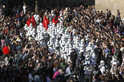 Centenares de fanáticos de 'Star Wars' desfilan por el casco histórico compostelano y rinden homenaje a Constantino Romero